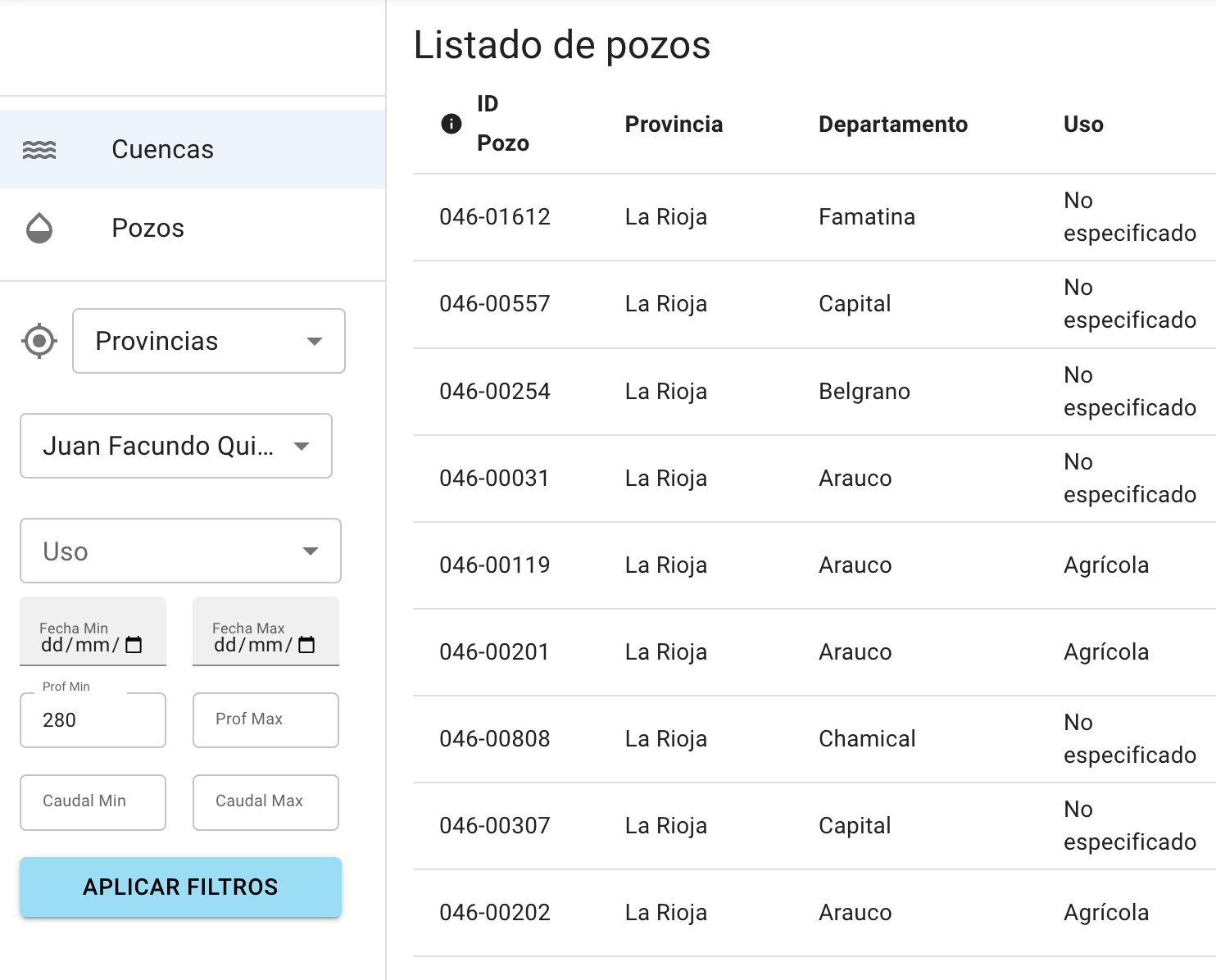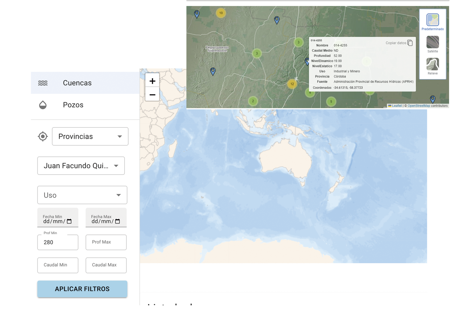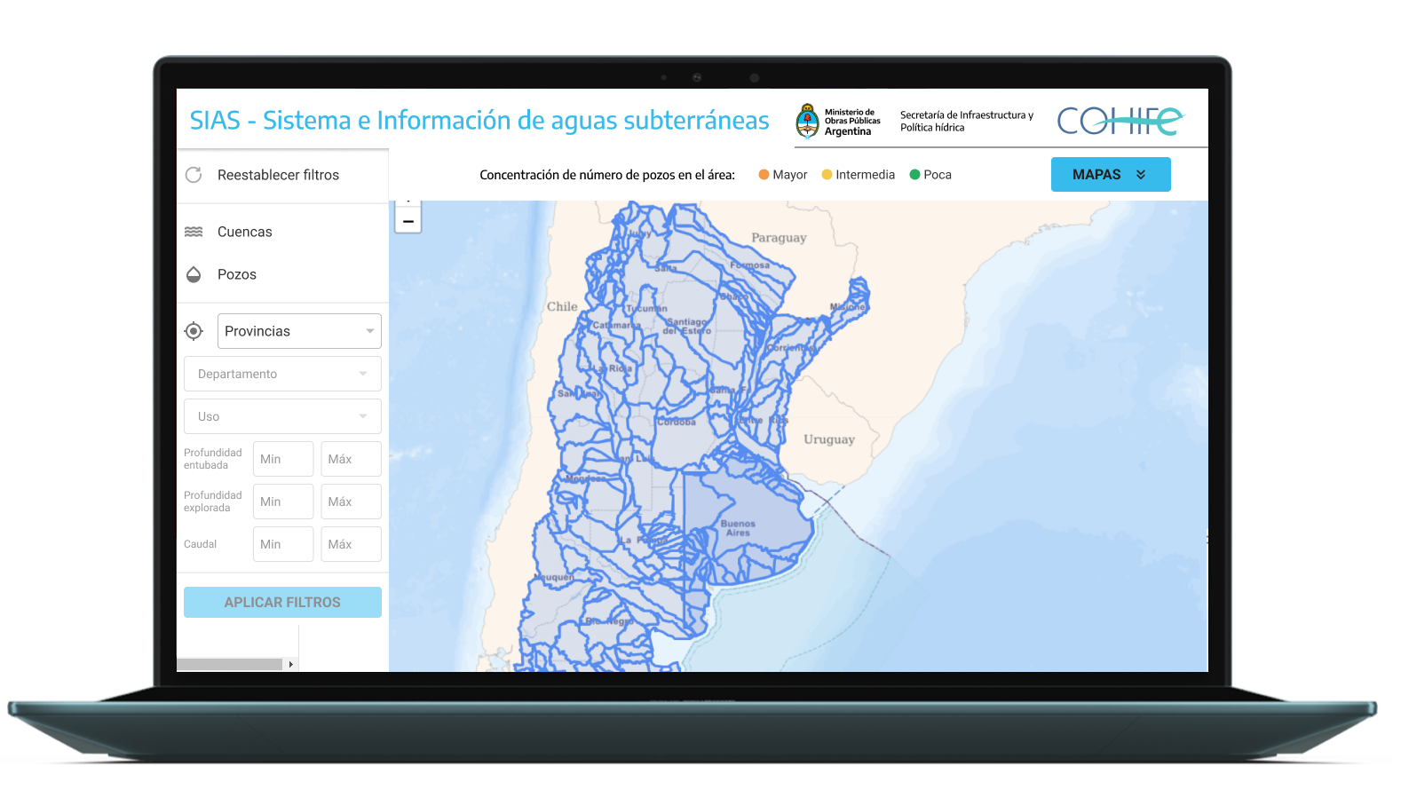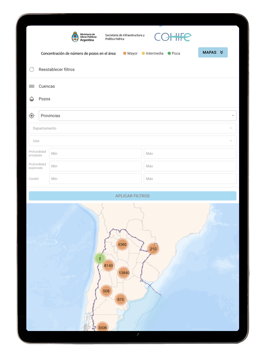 The designed platform enables public access to Argentina’s water data through: