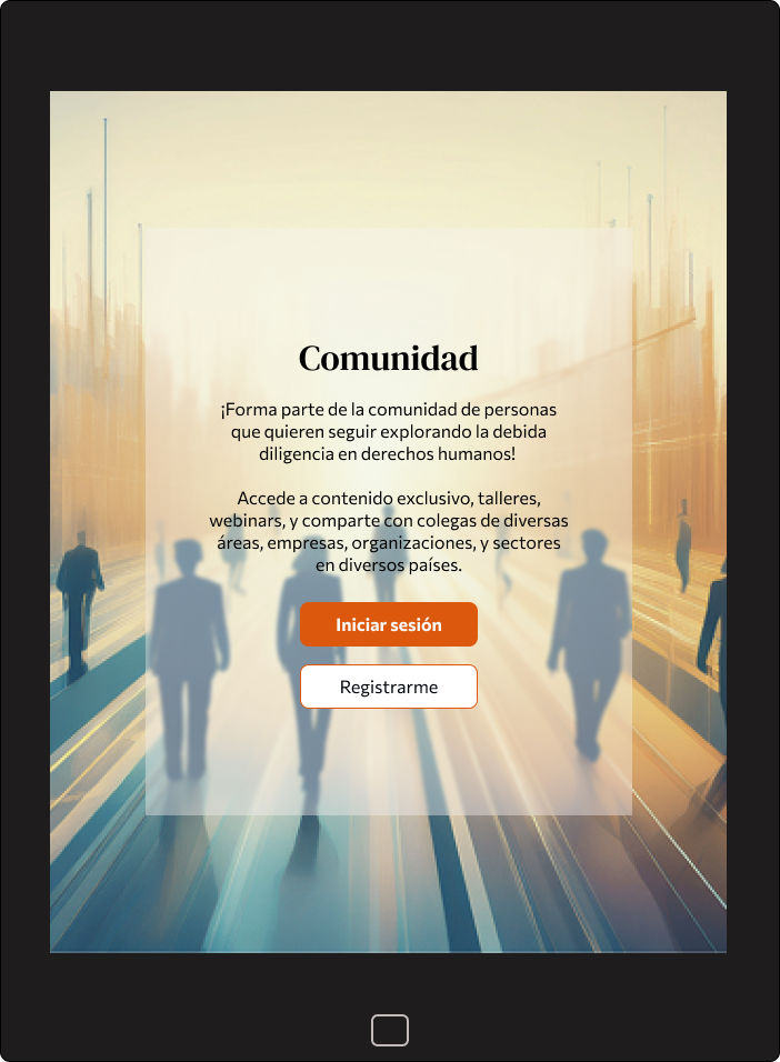 Instead of fragmenting access or forcing early registration, the experience allows users to freely explore public resources, content, and community information without logging in. Authentication is required only for active community participation and premium materials, aligning with the platform’s core goal: to act as an accessible entry point to the conversation on business and human rights, inviting exploration before commitment.